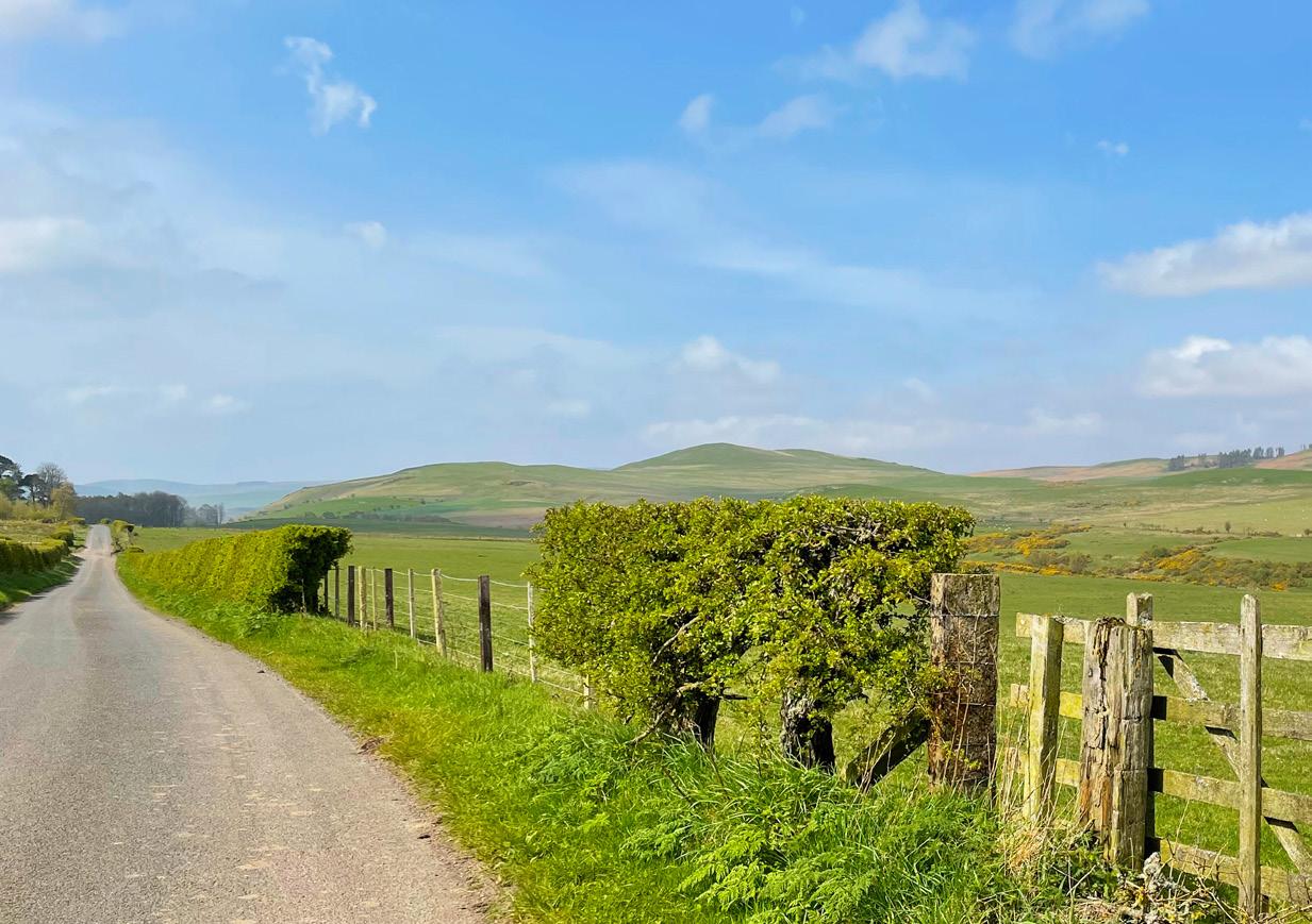 3 15km – Turn left at the junction and stay on this road, initially with a burn to the right, before a long ascent. Look out for a left turn at the top of the hill after a farmhouse