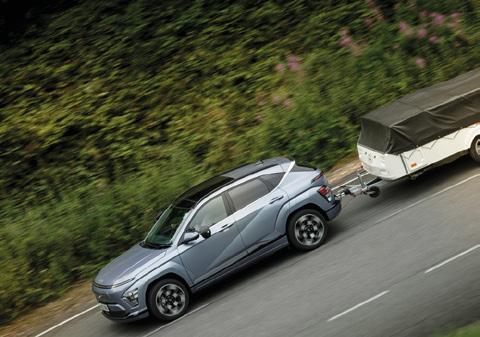 electric set-up frustrated on all fronts – it was slow to reach motorway speeds and, upon arriving at 60mph, the engine was coarse. On the steepest part of Millbrook’s hill route the Kona struggled to better 20mph with caravan in tow, while a firm, fidgety ride was also unwelcome. However, the Kona’s smart, well-made and roomy interior, coupled with great equipment levels, were positives.
