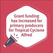 Exceptional Disaster Assistance Recovery Grants of up to $75,000 are now available to assist directly impacted primary producers with their clean up and recovery costs as a result of Tropical Cyclone Alfred. These grants were previously available for up to $25,000.
