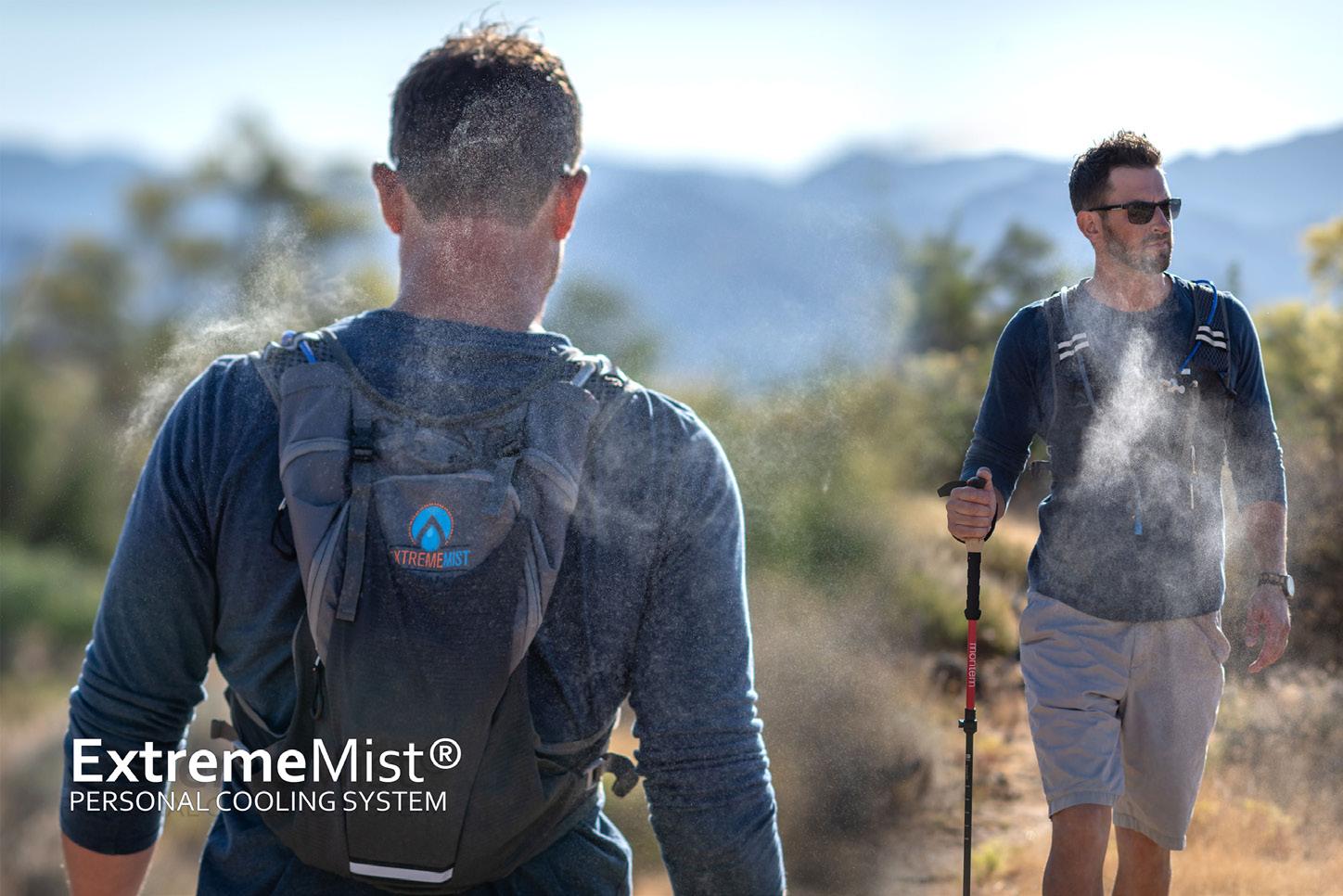 The ExtremeMist personal cooling system (PCS) is the only one of its kind to hydrate and cool you at the same time. The blue pump technology atomizes water into mist at 170psi as it mimics sweat to help cool you down as it evaporates from skin contact. The ExtremeMist PCS allows you to recover faster and extend any outdoor activity by cooling the surrounding air temperature by up to 30 degrees.