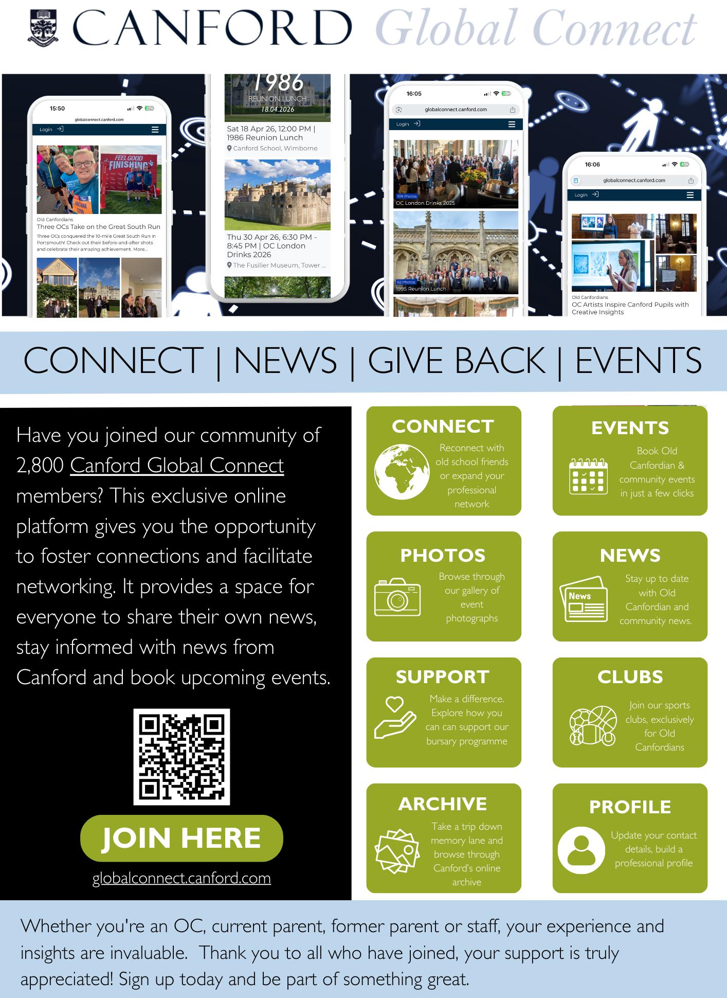 With new initiatives alongside familiar favourites, and the continued development of Canford Global Connect making it easy to stay in touch, there are many ways to remain involved and engaged. We are always pleased to welcome you back to Canford so don’t be a stranger! If you can’t make an event, are not a regular visitor, but happen to be passing or in the area, do get in touch, we would be delighted to see you.