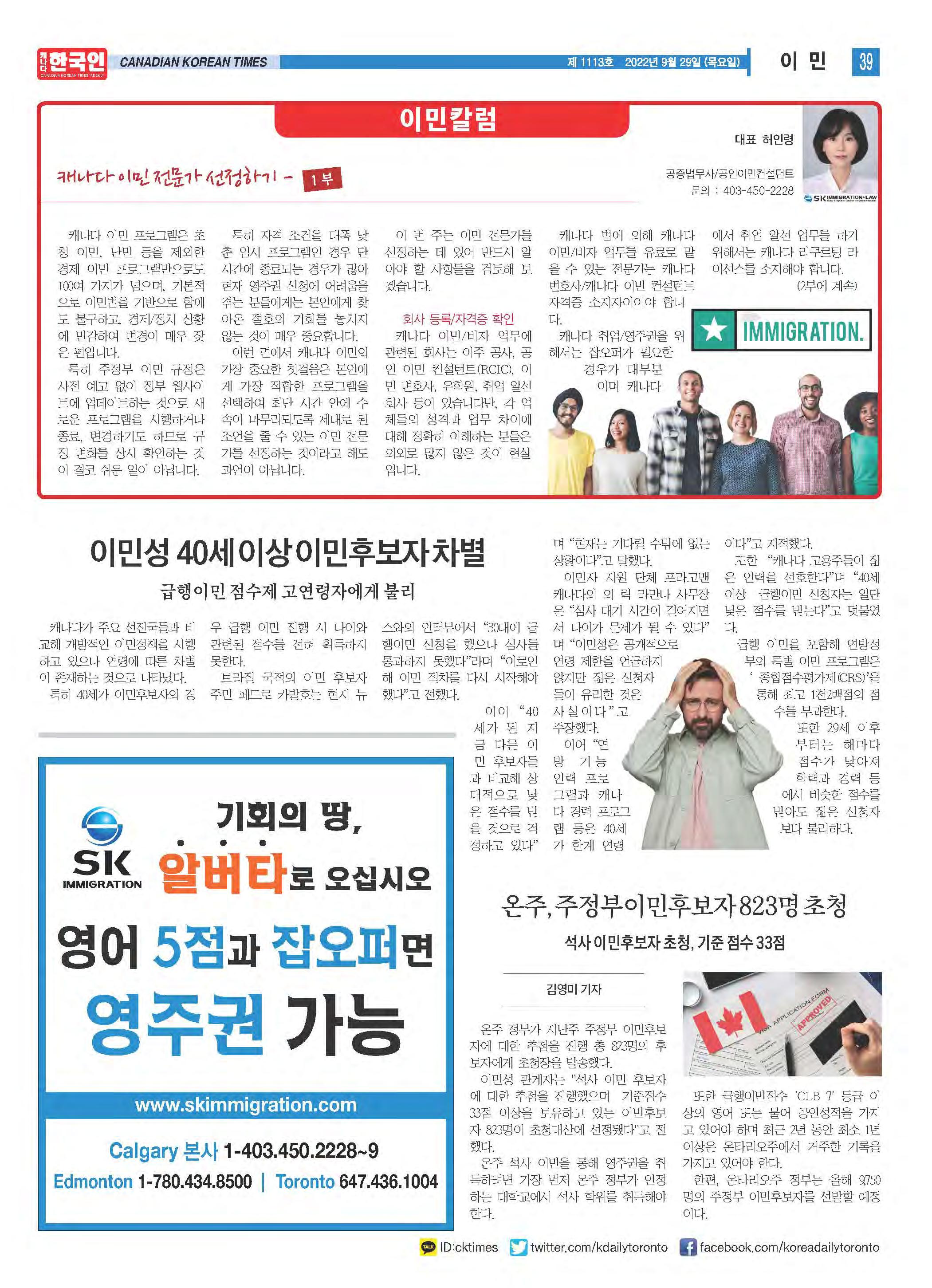 제 1113호 캐나다 한국인