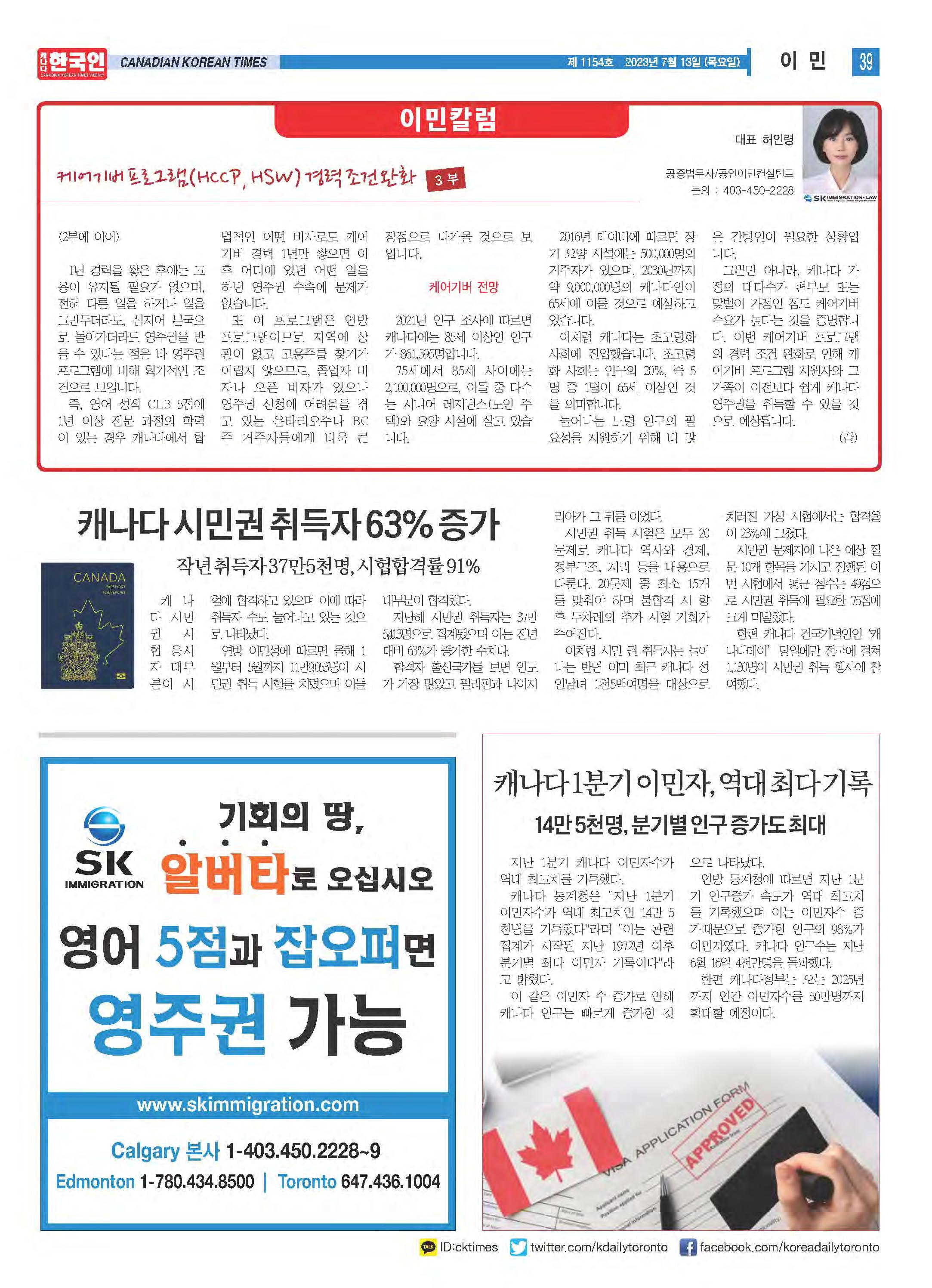 2023 제 1154호 -A 캐나다 한국인 by Korea Daily Toronto - Issuu