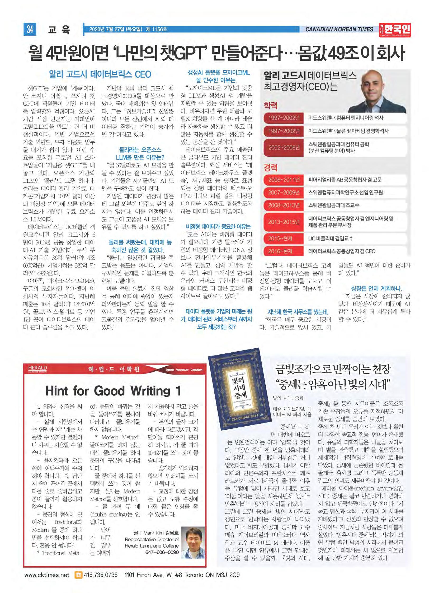 2023 제 1156호 -A 캐나다 한국인