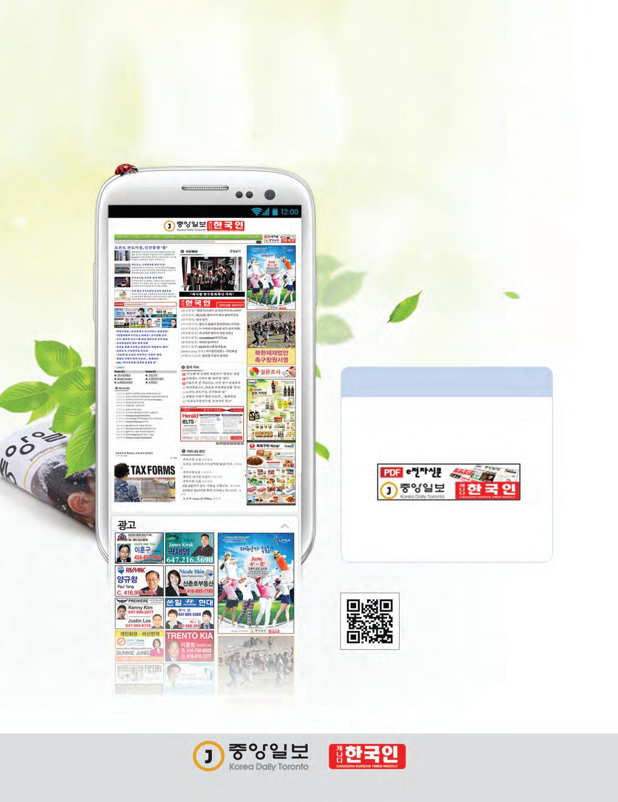 웹신문 보는 방법 이제, 웹신문이 대세! 페이퍼와 온라인을 동시에 구독할 수 있어 토론토 최대의 광고 효과를 누릴 수 있습니다. 중앙일보의 강력한 콘텐츠를 기반으로 한 웹신문을 통해 최상의 광고 효과를 경험해 보세요. www.cktimes.net 을 주소창에 입력한다. 03 상단메뉴의 캐나다 한국인을 클릭! 최신 주간지를 온라인으로 볼수 있다. 02 04 상단메뉴의 전자신문을 클릭! 토론토 중앙일보를 온라인으로 볼수 있다. 가장 뜨거운 최신 뉴스 확인을 위해 즐겨찾기 또는 북마크 필수! 업소록 중앙일보·캐나다 한국인 스마트폰 접속! 이제 QR코드 스캔으로 간편하게 하세요 01 최고의 신문 중앙일보는 매일 오후 한인 사회 내 모든 주요지점에 배포됩니다. 416.736.0736 | www.cktimes.net | 1001 Finch Ave. W. #204 Toronto ON M3J 2C7 사업성공의 지름길! 클릭만 하면 전세계 어디서나 볼 수 있는 중앙일보 웹신문! 항상 양질의 서비스를 제공해드리기 위해 최선을 다합니다. 최상의 광고효과!! 광고 눈뜨면 카페 생기더니 이효리·이상순도 접는다, 제주의 비명 용산, 의사단체에 “협의체 참여 거부 유감” 대화 재차 촉구 제주시 애월읍 한담해변 카페밀집지. 최충일 기자 가수 이상순이 카페 '롱플레이'에서 음악 선곡 작업을 하고 있다. 사진 롱플레이 SNS 23일 대구의 한 대학병원 소아청소년과 앞에 토요일 휴진 안내문이 붙어 있다. [연 합뉴스]