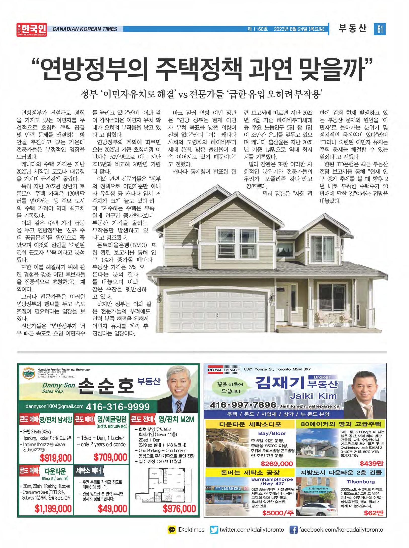 2023 제 1160호 -B 캐나다 한국인 by Korea Daily Toronto - Issuu