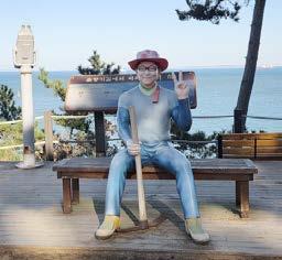 ▲태안 기름유출 사건 이후 3년간 곡괭이로 오솔길을 정비한 차윤천 씨 동상.(왼 쪽) 만대항 수산물판매장 트리우드 식당의 회덮밥.(오른쪽)