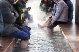 안보뿐이었다.충주시 김일균 온 천관광개발팀장은 “수안보는 어 느 시설을 이용하든 수질이 똑 같다”고 강조했다. 2018년 충주시는 석문동천 옆 에 ‘수안보 온천 족욕길’을 조 성했다. 약 300m 길이의 산책 로 곳곳에 무료 족욕장도 설치 했다. 겨울에는 2곳만 운영하는