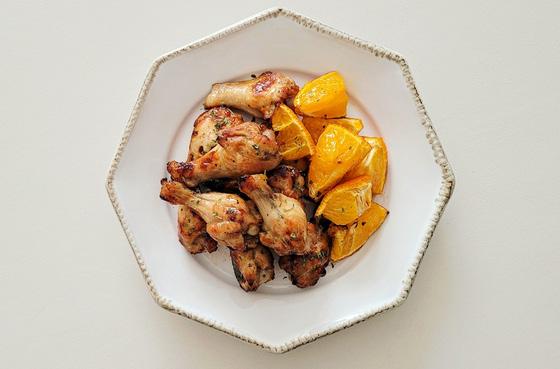 열한 오븐에 밑간한 닭봉과 한라봉 을 함께 구워 주세요. 닭봉이 노릇