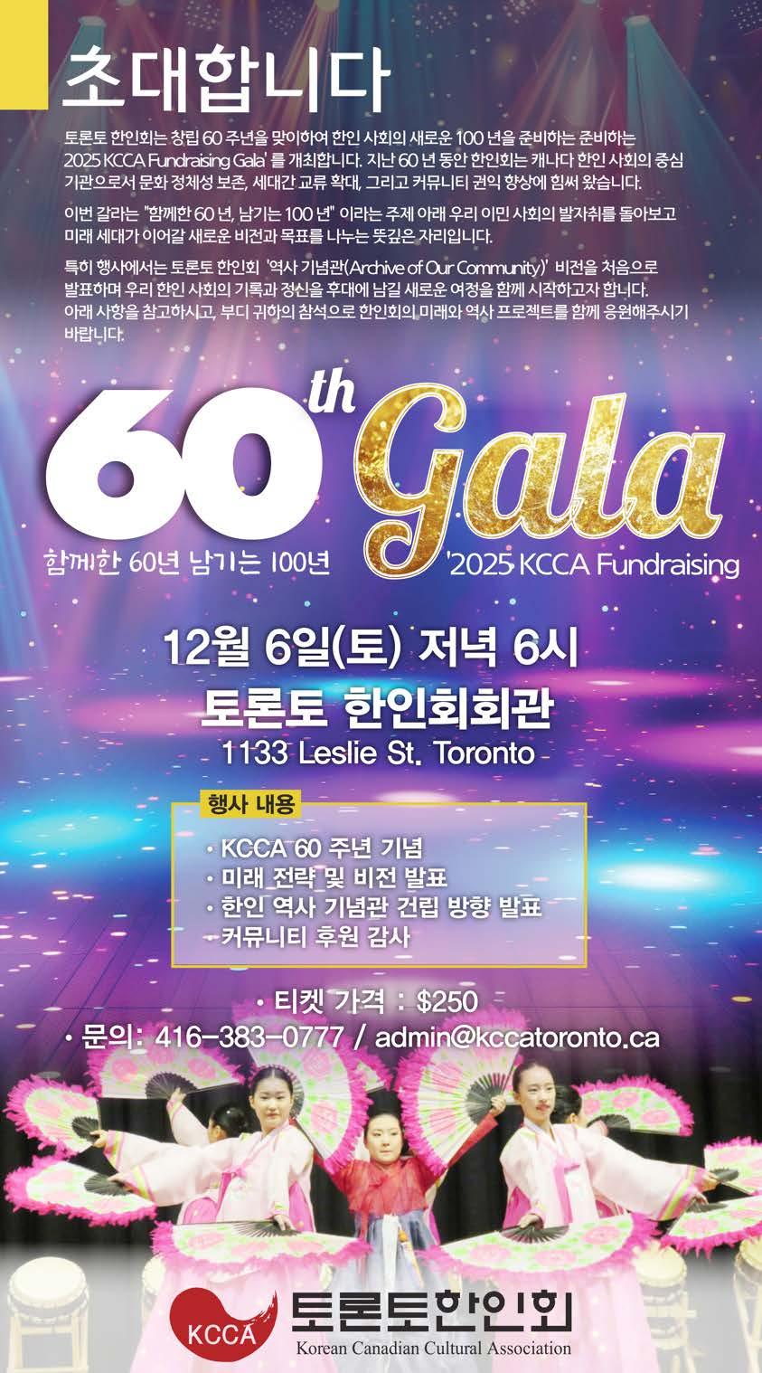 Castleview 양로원 강당 351 Christie St., Toronto ▶12월 6일(토) 오후 2시 Kipling Acres 양로원 2층 강당 2233 Kipling Acres Ave, Etobicoke ▶12월 13일(토) 오전 10시 Cummer Lodge 1층 강당 205 Cummer Ave., North York ▶12월 15일(월) 오전 10시 Carefree Lodge 1층 306