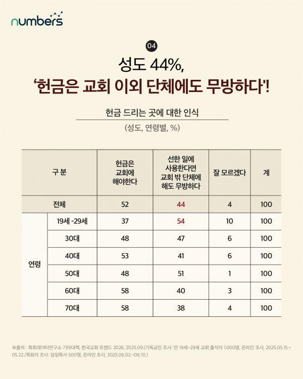 었다. 연구소는 "성도의 44%가 '교 회 밖 헌금'에 열려 있다는 사실은