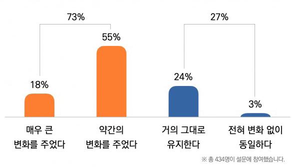설문은 "작년(2025년)과 비교해 2026년 목회 비전이나 목회 방향에 변화를 주었는가?"라는 질문으로 이루어졌다. 그 결과 '매우 큰 변화' 18%, '약간 큰 변화' 55%로 '변화를 주었다'는 응답이 총 73%에 달했으 며, '거의 그대로 유지' 24%와 '전혀 변화 없다' 3%를 합친 27%를 크게 웃도는 수치로 나타났다. 목데연은 "전반적으로 한국교회 가 하락세를 보이는 상황에서 '매 우 큰
