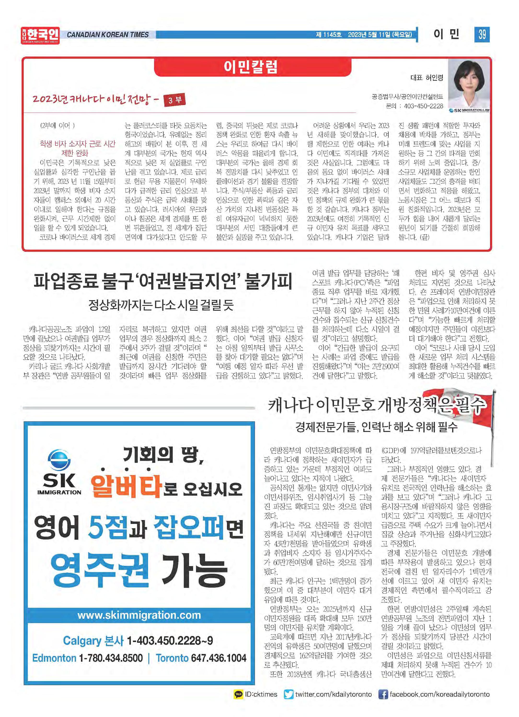 2023 제 1145호 -A 캐나다 한국인 by Korea Daily Toronto - Issuu