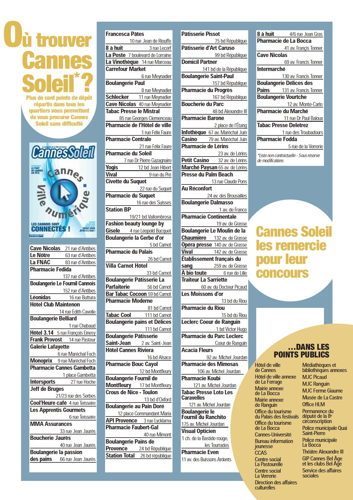 Le Mois à Cannes est disponible dans les points publics, touristiques et culturels de Cannes.