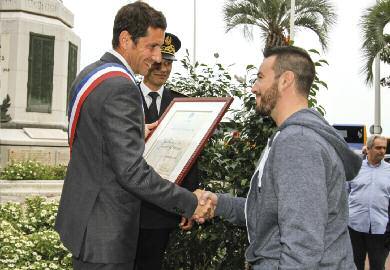 était bloquée par une autre. »Danslerestaurant,l’eaurentreparlavitrineà moitiécasséeparlesflots,etserépandjusquedanslacave,inondantlasalle. Lesclientsmontentsurlecomptoiretsurlestablespoursemettreàl’abri. « Ils criaient, ils n’arrêtaient pas de crier, et l’eau entrait, entrait… Je me suis retrouvé sept ans en arrière, quand je suis arrivé en Europe. Je fuyais le Soudan sur un bateau, et il s’est renversé, avec 28 personnes à bord. Tout le monde criait, nous étions prisonniers de l’eau. »C’estalorsquedehors,Adamvoitun hommedansunevoiture.«Je l’ai appelé, puis je lui ai lancé une petite corde pour pouvoir le hisser hors de l’eau et le ramener vers moi. »Pasassezsolide, ellecasse.«Je lui ai alors donné ma main, au moment où l’eau l’emportait, et j’ai failli partir avec lui… »Adamfinitdebriserlavitreàcôtédelaporte,et dansunélan,lefaitrentrer.Cechauffeurdelimousineluidoitaujourd’huila vie.Adamlui,l’assure:«Je n’ai fait que ce qu’il y avait à faire. »UngestehéroïqueauquelleMairedeCannesarenduhommagele9octobredernieren décernantàAdamlediplômed’honneurdelaVille(voirp.21)