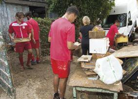 Le 6 octobre, une trentaine de footballeurs de l’AS Cannes et leurs deux entraîneurs ont participé à vider les maisons des particuliers sinistrés du quartier SaintJoseph, avant de rejoindre la résidence La Joie de Vivre où leur aide musclée s’est avérée précieuse. Le lendemain, les jeunes footballeurs ont poursuivi leur bonne action dans les établissements scolaires fermés.