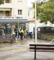 Ci-contre : Les agents municipaux se sont déployés dans la ville afin de nettoyer rapidement les quartiers sinistrés, comme ici sur le boulevard de la République.