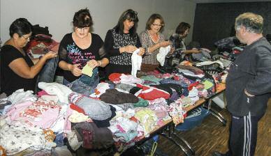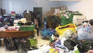 Ci-dessus : Les vêtements et autres matériels d’éléctroménager donnés par les particuliers et collectés par le CCAS depuis le début des intempéries ont été distribués par des bénévoles aux sinistrés pendant 8 jours au Cannes Garden Tennis Club et à la Maison des associations. Vous pouvez continuer à donner au Secours Populaire en les contactant au 04 22 10 38 76 ou au 06 26 62 42 07 (voir p.24).
