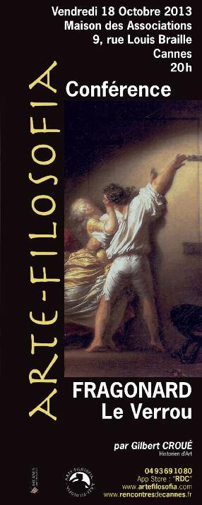 Arte-Filosofia présente un colloque le 5 octobre de 10 heures à 18 h 30 à la Maison des associations sur Égoïsme et bienveillance, donné par Matthieu Ricard, traducteur officiel du Dalaï Lama en France, par Michel Terestchenko et animé par Françoise Dastur (places limitées sur inscription. Entrée 45 euros la journée. Moins de 20 ans : gratuit). Une conférence sera également donnée le 18 à 20 heures sur Fragonard - le verrou par Gilbert Croué. Rens. 04 93 69 10 80