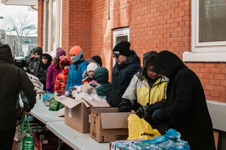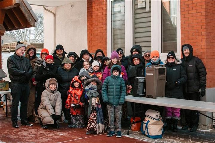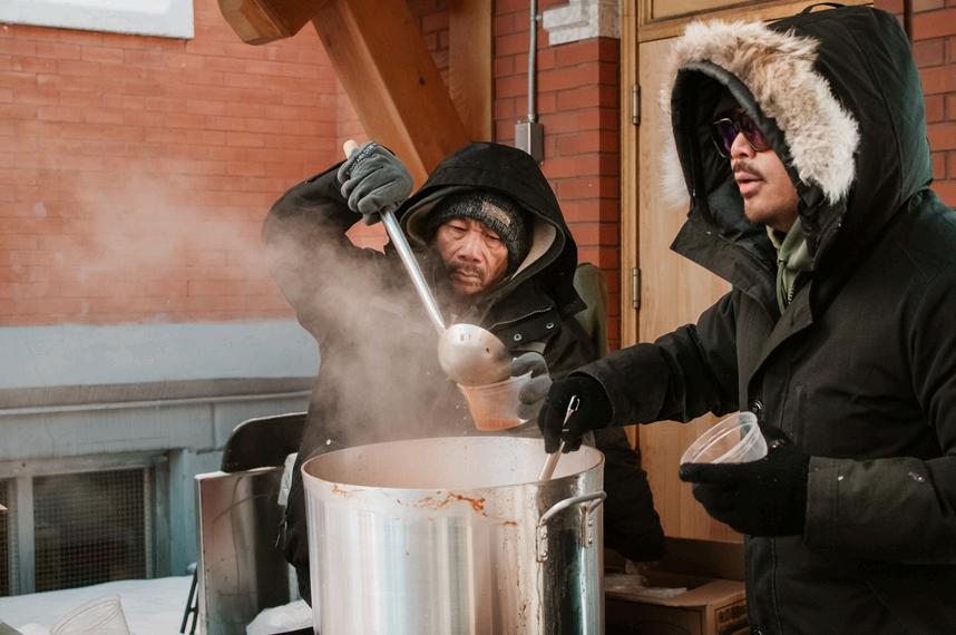 On February 28 , a group of volunteers gathered at Sacred Heart Catholic Church of the First Peoples Courtyard The day was overcast with an average temperature of -28 degrees celsius These compassionate volunteers gave their time and endured the cold to serve food to the less fortunate