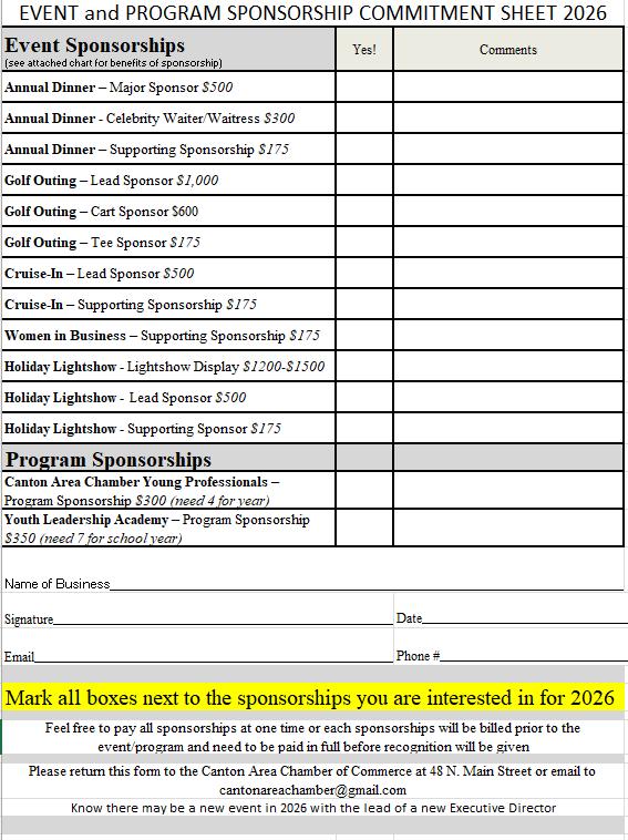 We have a busy and exciting calendar ahead, and I’m looking forward to continuing the strong lineup of Chamber events that bring our business community together. In the coming months, we’ll be preparing for several key events, including our Annual Dinner, ongoing Business After Hours, and planning efforts for signature events like the Canton Cruise-In, Golf Outing, and other community-focused programs that our members have come to value.