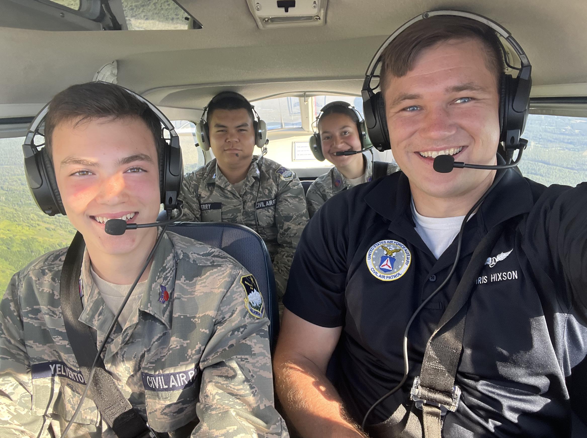 Tell me about the O-flights. “CAP has a syllabus designed for each cadet to take 5 flights before their 18th birthday. The first two flights cover the basics. On the third, we demonstrate maneuvers, like stalls and steep turns. We teach instruments and weather on the fourth and fifth rides. My preference is to take up two or three cadets at a time so I can double or triple everyone’s flight time. With two cadets, I can fly from Birchwood to Talkeetna and back. With three, I can fly from Birchwood to Seward to Kenai before com-