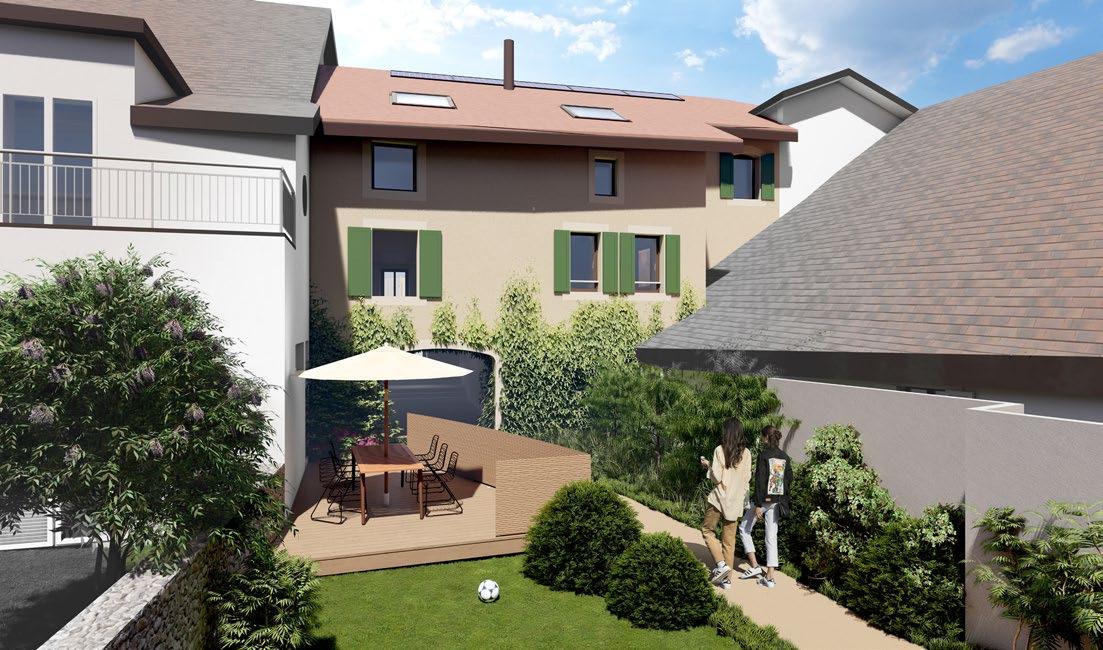 Maison contiguë de 5,5 pièces en triplex. 2 places de parc extérieures. CHF 1’040’000.-