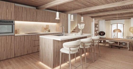 Au premier étage, l’appartement se compose d’une salle à manger-séjour, une cuisine séparée, un hall d’entrée, un vestibule et une toilette. Dans les combles, il y a deux chambres à coucher avec salle de bain et une salle de douches. La galerie est constituée d’un espace ouvert et d’une salle de douches.