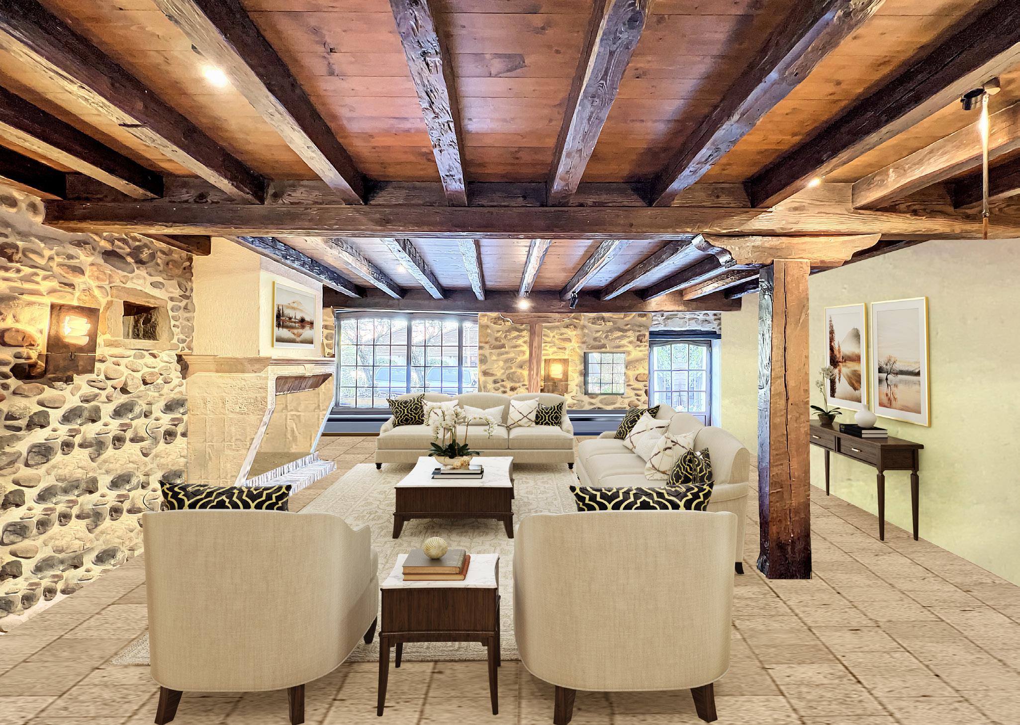 La demeure de 15 pièces a été rénovée en 2012 et dispose de deux ailes, une rustique avec des pièces spacieuses et accès sur la terrasse avec espace barbecue, la seconde entièrement transformée en appartement style « loft » avec charpente apparente et généreux espaces vitrés.