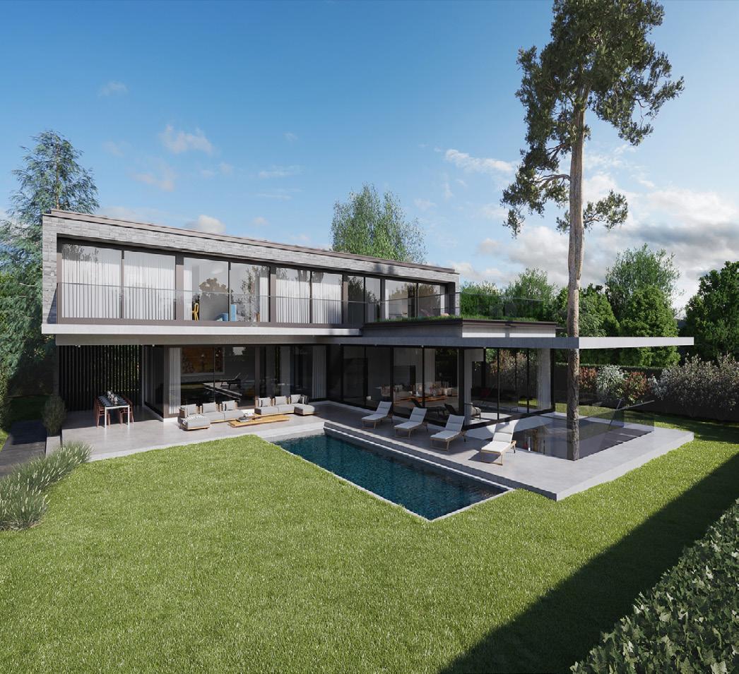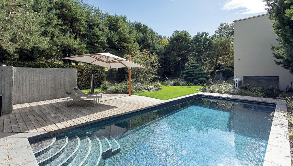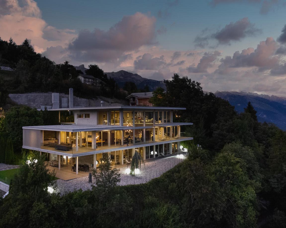 Ideally nestled out of sight with a 180° panoramic view of the Alps, this contemporary villa is south-facing and enjoys optimum sunshine from dawn to dusk. Its sleek architecture connects the interior and exterior spaces without limits, integrating perfectly with its green setting and the enchanting landscapes that surround it.