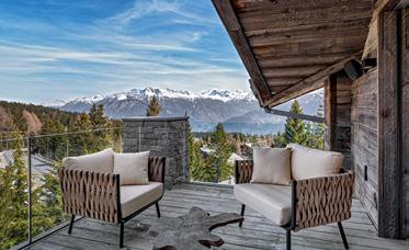 Surplombant la commune de Crans-Montana, ce chalet a été conçu comme un lieu de retraite alpin, privilégiant la tranquillité et le luxe non ostentatoire. Sa surface de 1’788 m2 permet d’accueillir jusqu’à 30 personnes et d’offrir des prestations haut de gamme telles qu’une piscine intérieure, un espace de relaxation, un sauna ou encore une cave exclusive et son espace dégustation, qui font partie de ses nombreux atouts. Overlooking the town of Crans Montana, this chalet has been conceived as an alpine retreat, privileging tranquility and unostentatious luxury. Its 1’788 sqm living area can accommodate up to 30 people and offers high-end services such as an indoor swimming pool, relaxation area, sauna or an exclusive cellar and tasting area, which are among its many assets.
