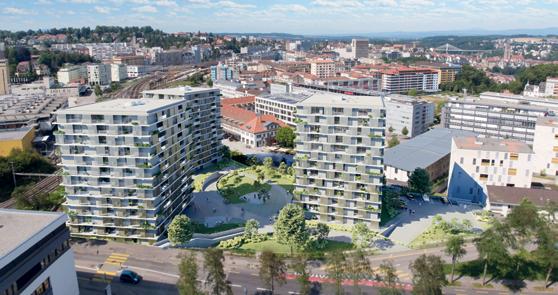 En parlant d’hôtel, celui qui devait occuper la tour a été remplacé par des logements adaptés aux seniors, 56 au total (achetés par un fonds immobilier), dont les seuils, salles de bain, ascenseurs ou encore buanderies seront équipés pour la mobilité réduite (sans être médicalisés). De quoi favoriser la mixité intergénérationnelle car plus haut, dans les étages supérieurs, 72 appartements seront construits (contre 45 planifiés au départ), tous munis de balcons et d’une vue à couper le souffle sur les Préalpes fribourgeoises ou sur la ville de Fribourg. Enfin, seuls 522 m2 seront dédiés aux surfaces commerciales. En tout, c’est donc 128 nouveaux appartements qui seront construits.