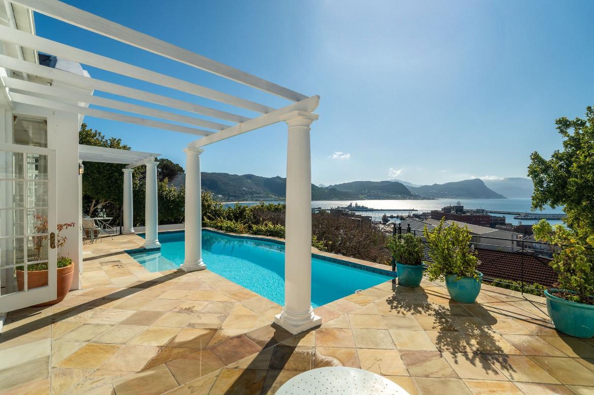 This beautifully renovated townhouse offers m odern luxury just a short stroll from Sim on?s Town village,with light-filled living spaces flowing onto a sheltered patio overlooking the yacht basin and False Bay.Featuring three bedroom s,a sunlit m ain suite with private patio, and a separate flatlet,it com bines contem porary com fort with tim eless seaside elegance.