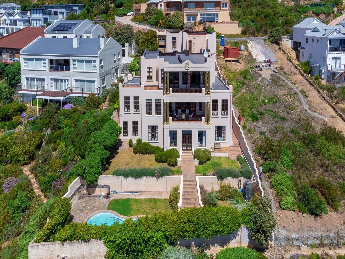 Perched above Sim on?s Town,this ultra-m odern hom e offers panoram ic views of the yacht basin,False Bay,and surrounding m ountains,with striking architecture and abundant natural light.Featuring open-plan living,a gourm et kitchen,a pool courtyard,two en suite bedroom s upstairs,and a lower-level flatlet,it com bines style,functionality,and effortless coastal living
