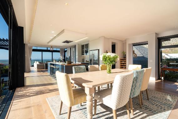 With spectacular views across all of False Bay and its encircling m ountain ranges,this five-bedroom , two-bathroom hom e has separate entrances to both the upper and lower levels,perfectly lending itself to dual living or could provide the perfect hom e for a growing fam ily needing abundant living space and access to the outdoors