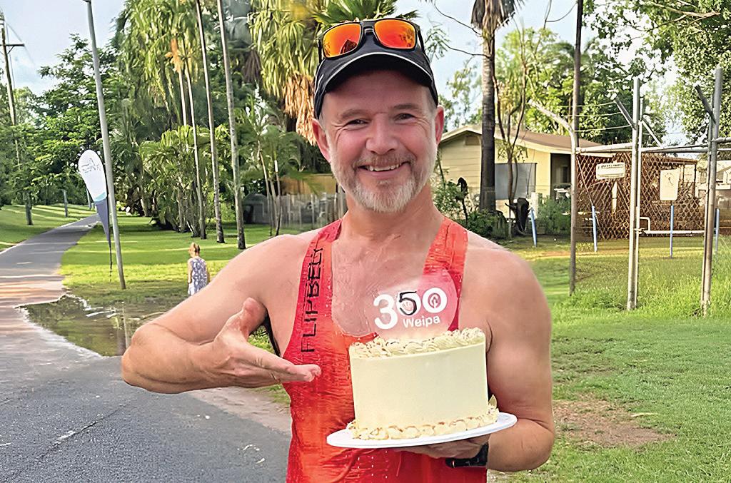 A great Valentine’s Day morning for Ross Dawson, who was the first over the finish line at his 350th parkrun. Photo: Weipa parkrun.