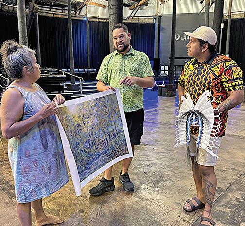 Susan Reys, CIAF artistic director Teho Ropeyarn, and Tobias Corrie celebrate sharing culture and stories through art. Photo: Chisa Hasegawa.