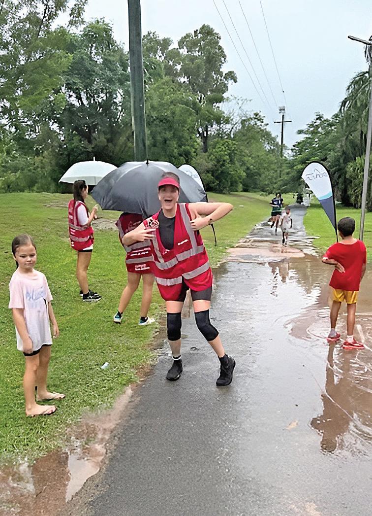 Volunteers Chris Blythe, Tamlyn Crozier, Sherece McCulloch, Jason Smith, Georgia Stoddart, Mel Scott, Tracey Small and Michael Reinke donned their vests and umbrellas to ensure the morning was a success.