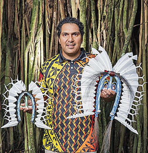 Zenadth Kes/Torres Strait Islander artist Tobias Corrie will share a strong message about climate change through traditional headdresses at the 2026 Cairns Indigenous Art Fair. Photo: Veronica Sagredo Blueclick Photography.