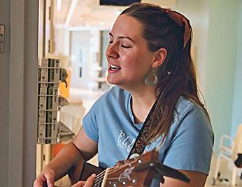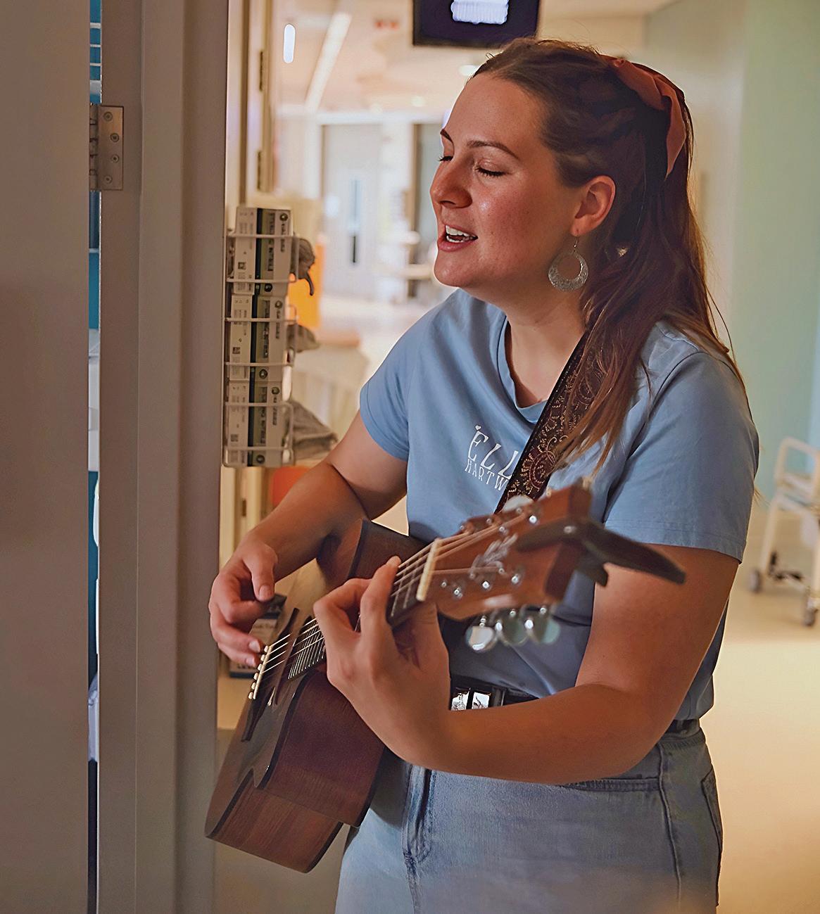 Cooktown’s Ella Hartwig brings musical joy to kids at the Queensland Children’s Hospital before taking the stage at Australia’s biggest country music festival. Photo: Queensland Children’s Hospital.