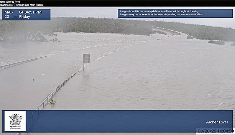 The new Archer River Bridge was put to the test when water rose six metres above the bridge. Photo: Department of Transport and Main Roads.