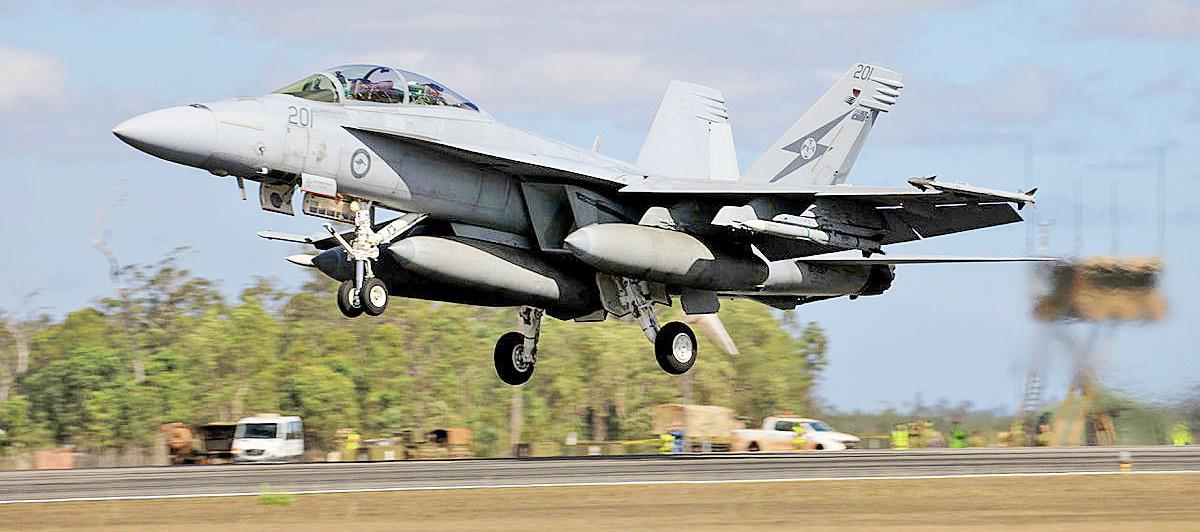 An Air Force F/A-18F Super Hornet departs on a flying operation from Weipa’s RAAF Base Scherger during Exercise Talisman Sabre in 2021.
