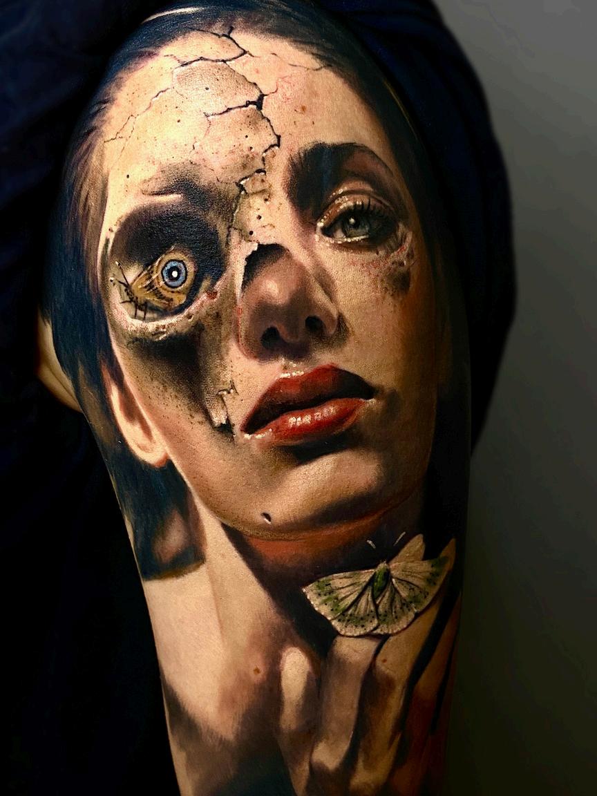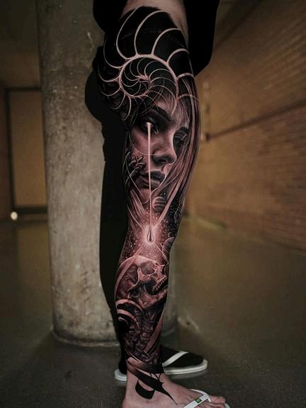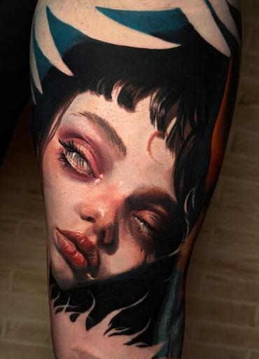 My dark realism style developed naturally over time Giving myself freedom in interpreting each subject, I gradually focused on conveying emotion, through the gaze, the play of light and shadow, and the exploration of inner fears and subtle sensations I draw inspiration not only from tattooing, but also from photography, music, and painting, which shape my visual language and bring a fine-art sensibility to my work Everyday life experiences, encounters, and quiet moments outside of art also inspires me and often becomes the starting point for my creative process
