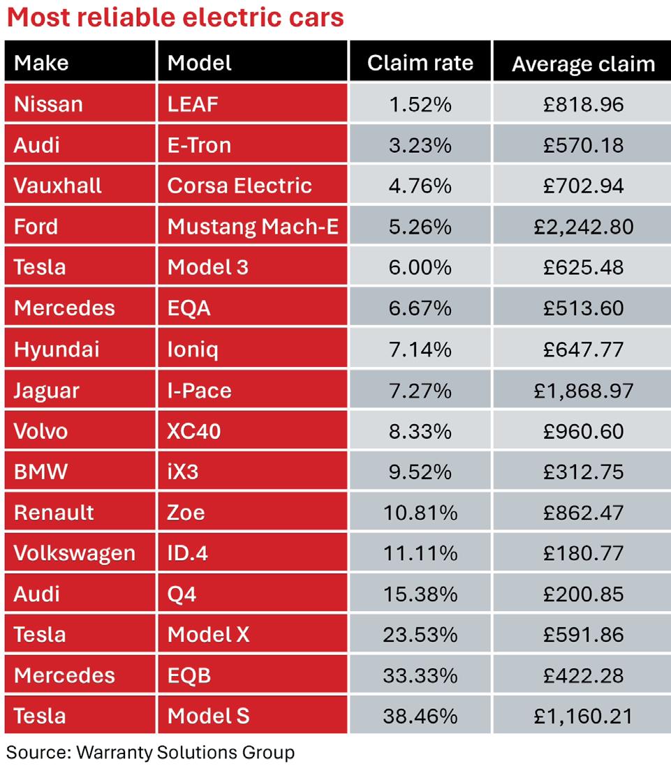 While the WSG data provides high-level insight into EV reliability, it is important to note that it is a small sample group and only covers 16 allelectric models for which it provides aftermarket warranties. Even in the last six months, some of the data has changed significantly. The coming years are likely to see the situation shift as manufacturer warranties expire on a growing number and variety of models and secondhand dealers look to provide aftermarket warranty cover for customers.