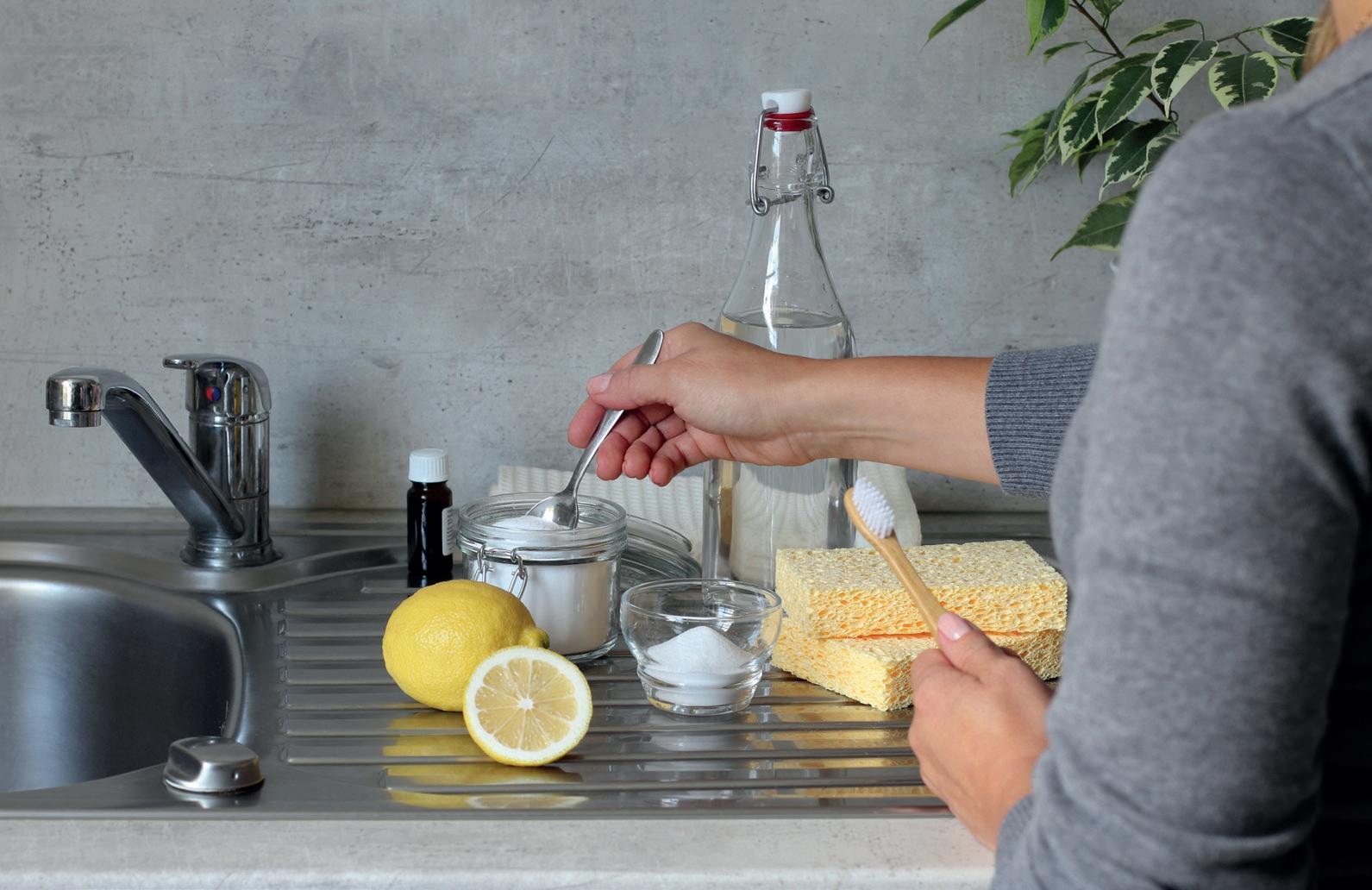 Make your own cleaning solutions using natural ingredients like vinegar, baking soda, and essential oils.