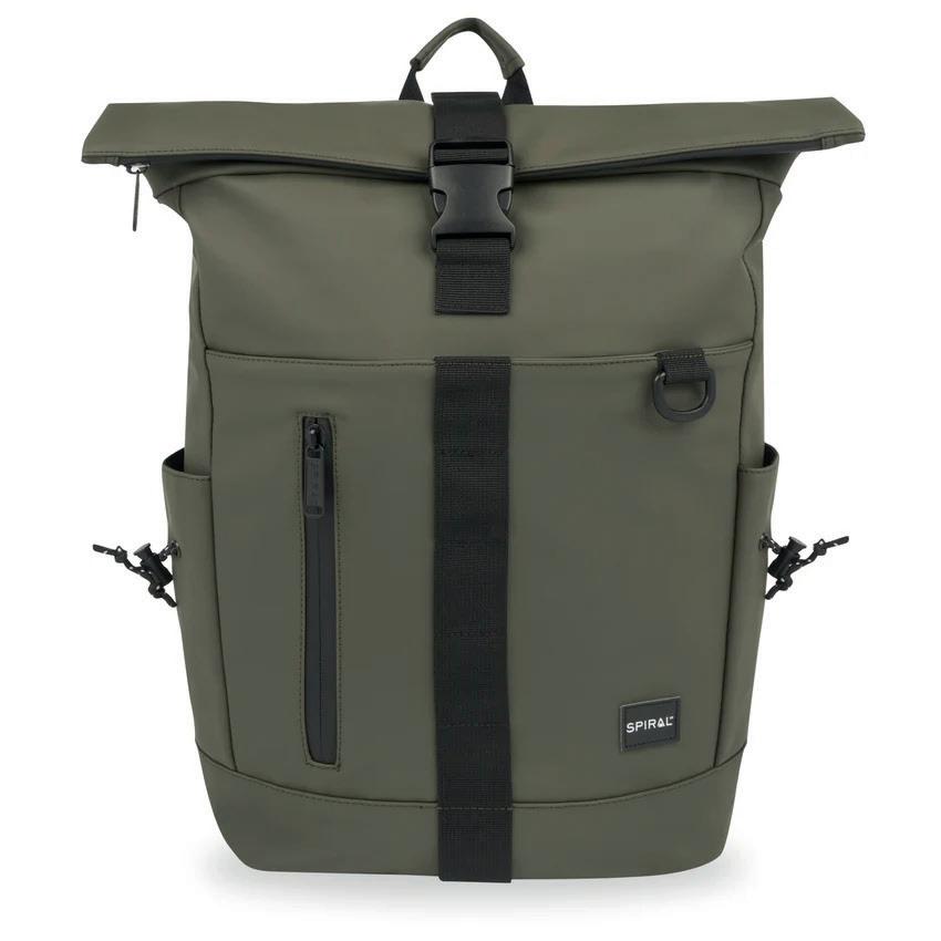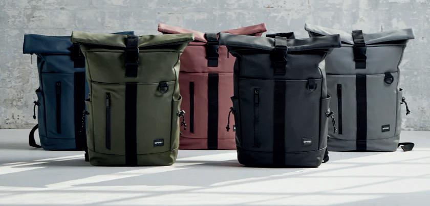 • Features: Roll-top silhouette with clip buckle, multiple zip-secure pockets,