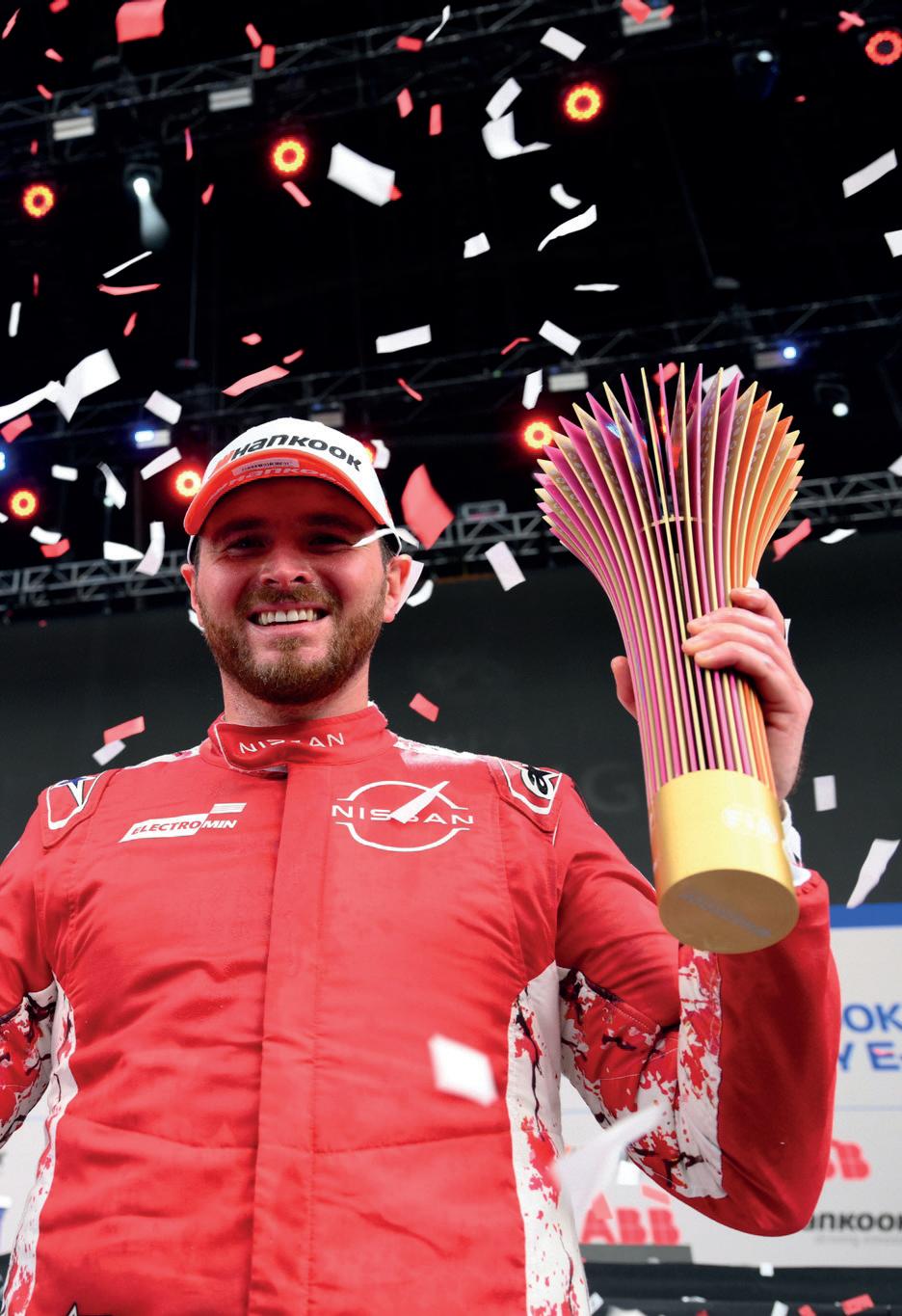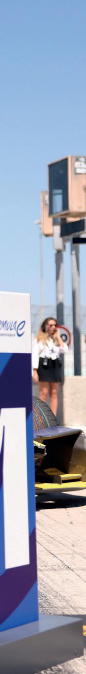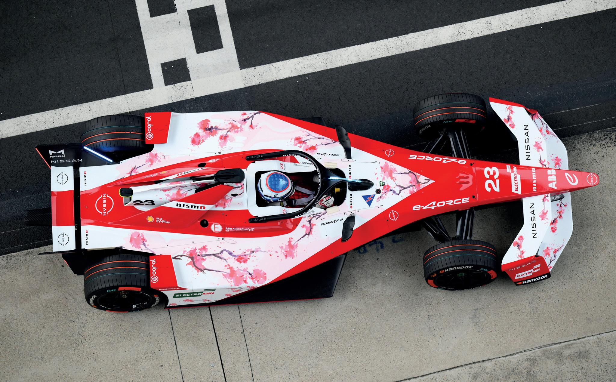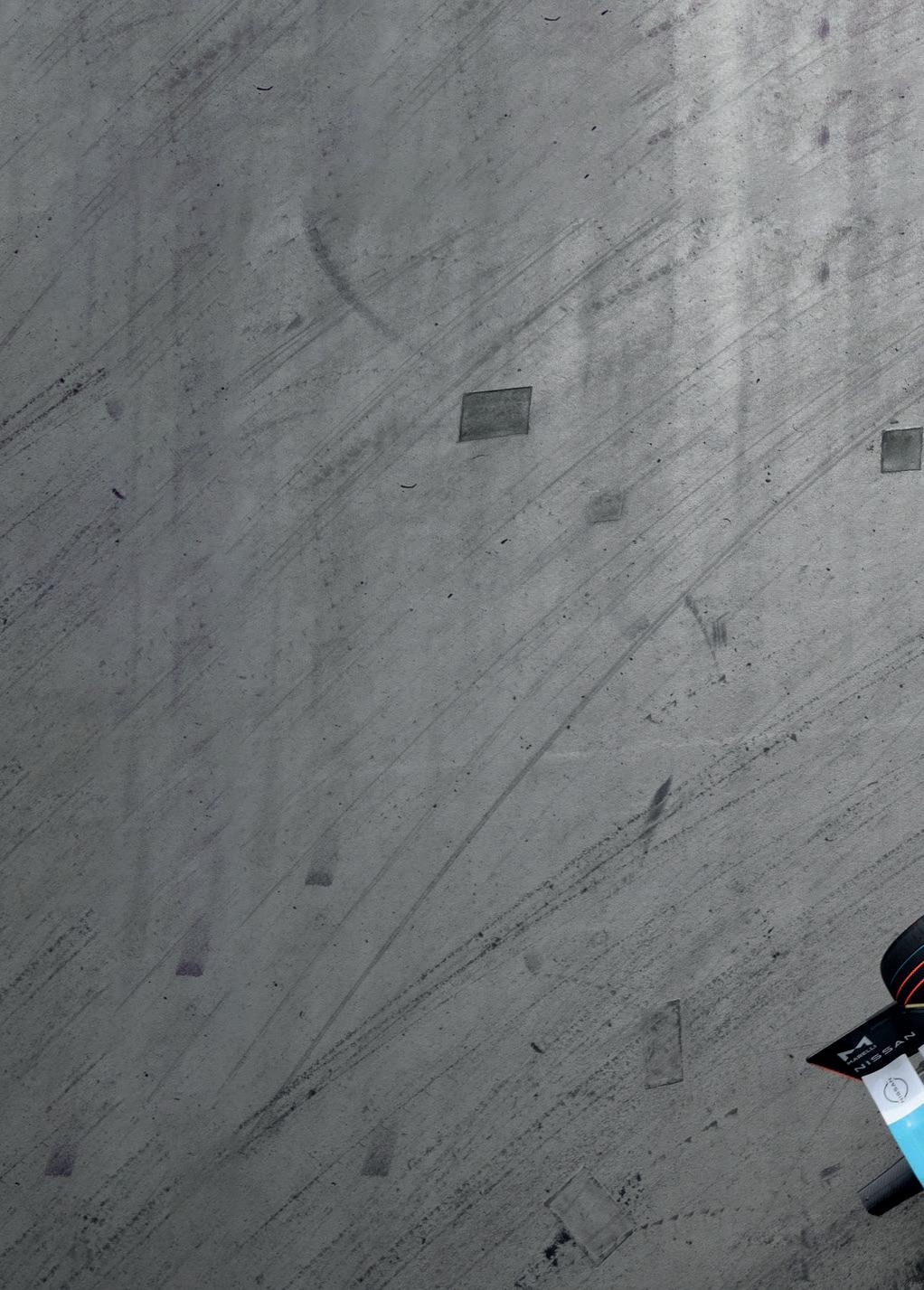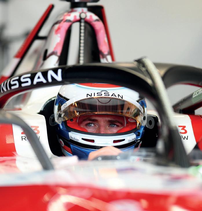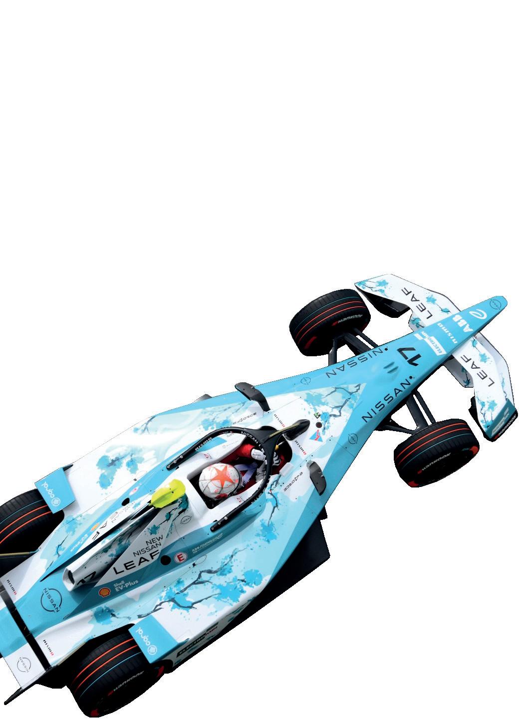 Inside, 3D printed seat pads that can be shaped to an individual driver are fitted to carbon fibre shells and finished in eco-friendly synthetic leather created from recycled plastic and oils derived from used racing tyres. Elsewhere there’s a pared-back look with exposed body elements and bright orange elements inspired by the highvoltage cabling of EV powertrains.