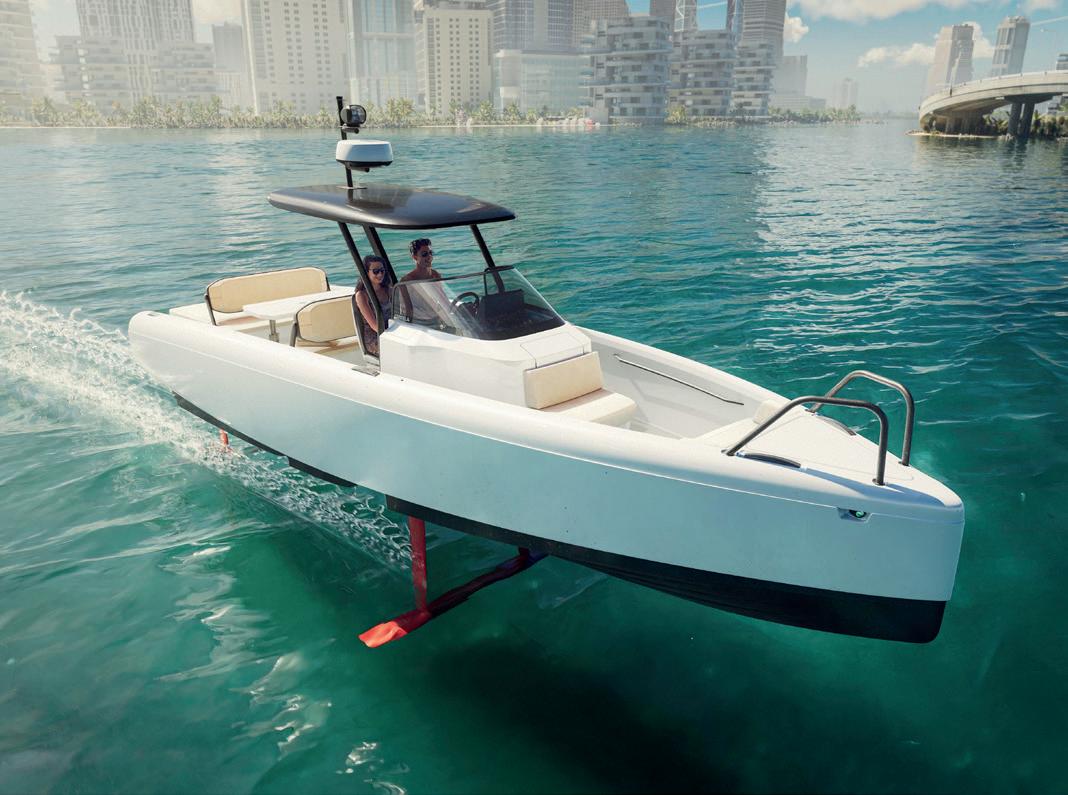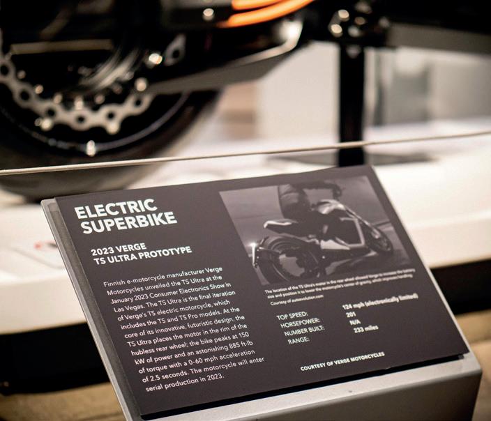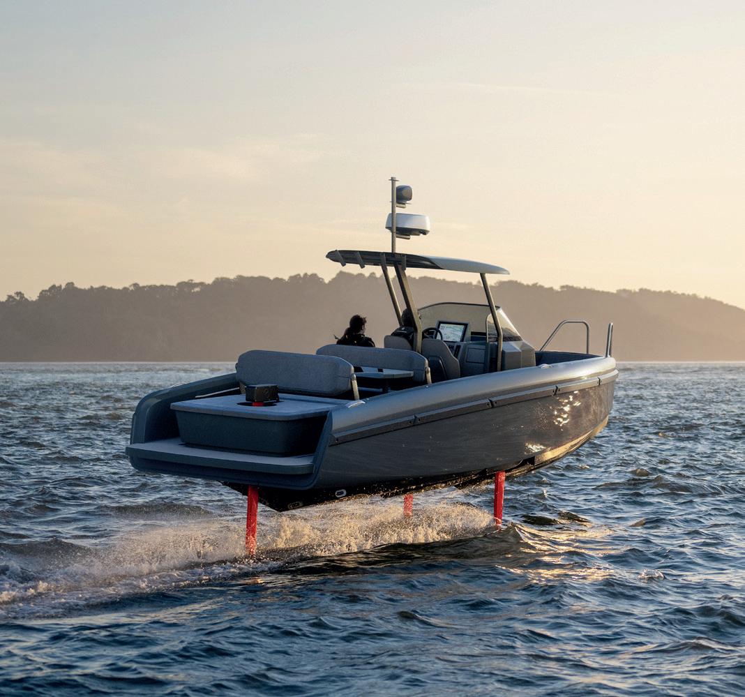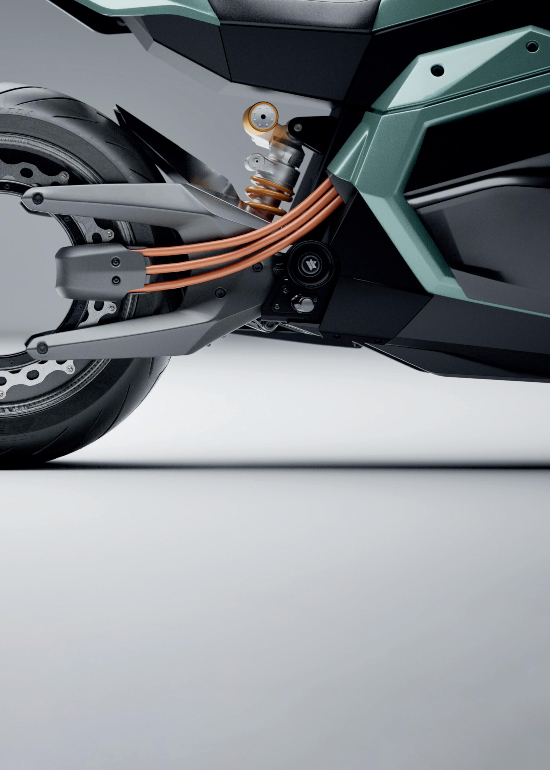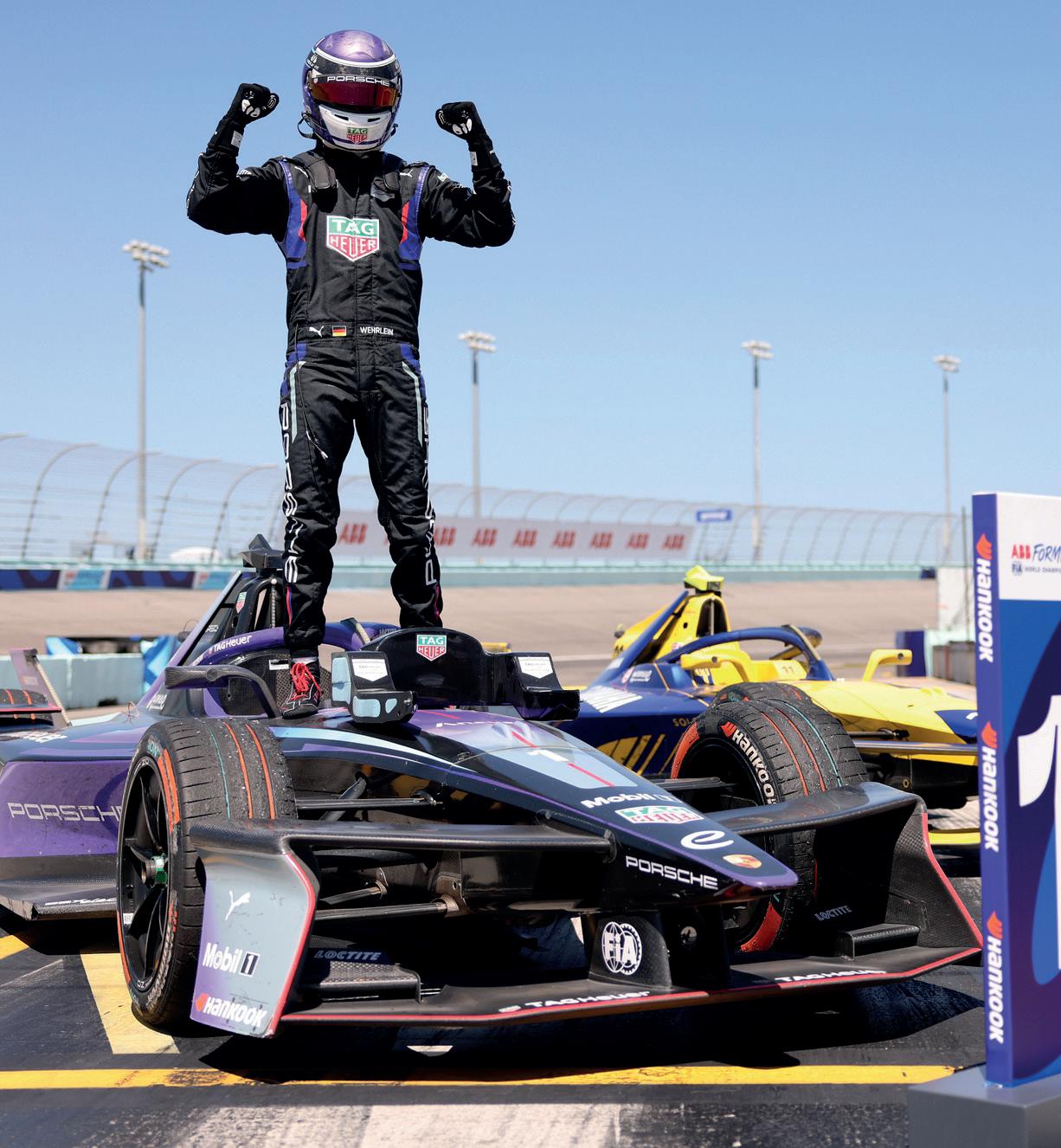 Inside, 3D printed seat pads that can be shaped to an individual driver are fitted to carbon fibre shells and finished in eco-friendly synthetic leather created from recycled plastic and oils derived from used racing tyres. Elsewhere there’s a pared-back look with exposed body elements and bright orange elements inspired by the highvoltage cabling of EV powertrains.