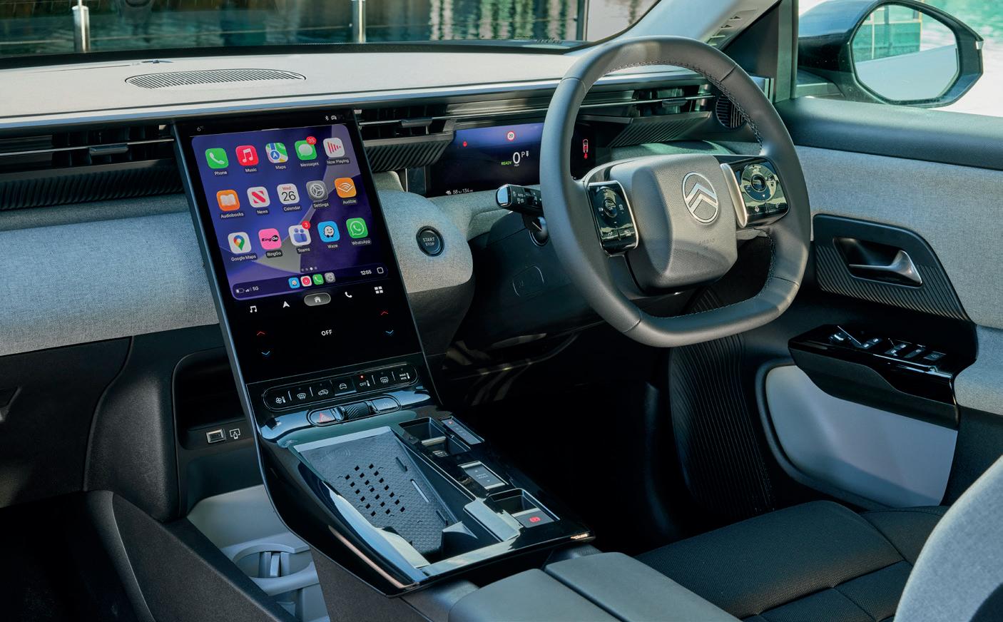 The Smartband screen stretches the width of the car beneath the windscreen and provides a “floating” information display which Citroen says is cheaper to develop and produce than a traditional head-up display.