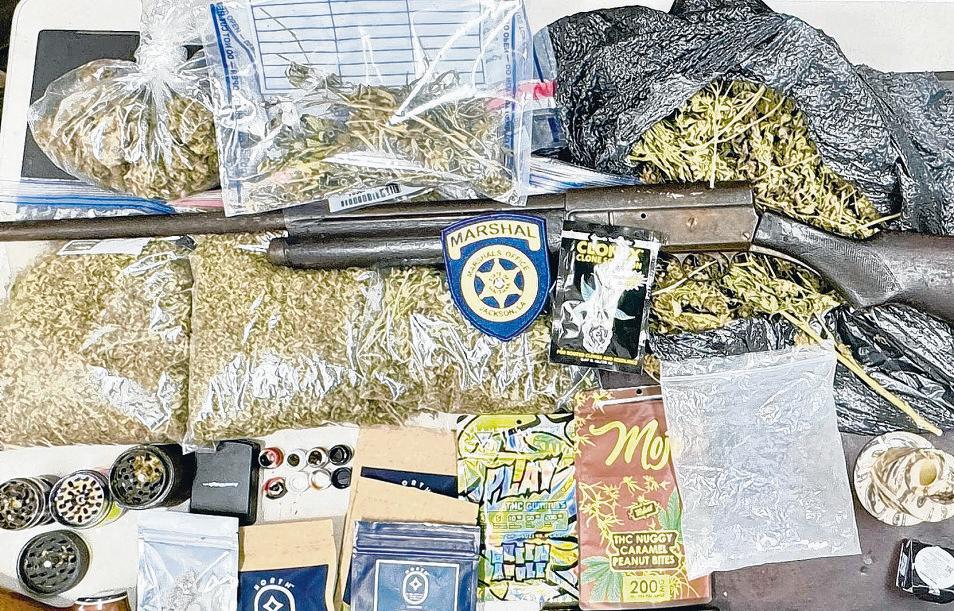 Thefollowing day, police served a search warrant at the Church Street residence, where he lived with his 60-year-old mother,and recovered additional suspected illegaldrugs and two more firearms, Harrell said In all, officers seized approximately 4pounds of marijuana, 5ouncesof THC gummies, four grams of THC resin, 7grams of “shrooms,” or suspected hallucinogenic mushrooms, assorted drug paraphernalia andtwo 12-gauge shotguns,Harrell said In addition to drug charges, George was booked withillegal possession of afirearm with acontrolled, dangeroussubstance. Officersdetermined